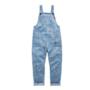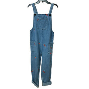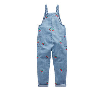 New - MINI BODEN - Red Festive Car Embroidered Denim Overalls Size 6Y - 7Y