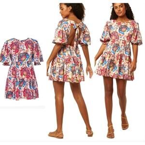 New MISA LA Honor Mini Dress Amalfi Botanical Floral Prairie Puff Sleeve Flowy