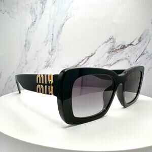 MIU MIU New Sunglasses - 100% Authentic! Sale Includes: MIU MIU Box, Miu Miu Case, Miu Miu Care Material, Polish Cloth 1,500 + Satisfied Customers with Positive Selling Reviews AUTHENTICITY GUARANTEED 100% ORIGINAL and BRAND NEW Item Details: * Brand: MIU MIU * Condition: Brand New MIU MIU Sunglasses - 100% Authentic * Black Solid Acetate Front Frame * Contrasting MIU MIU Gold Metal Letter Logo * Square Full Rim Silhouette Shape * Gray Gradient Lens * Unisex Eyewear * Unique Serial Number etched to confirm authenticity * Made In Italy * Frames May Be Used As Eyeglasses * Measurements: Lens/Bridge/ Temple 53-18-135 mm 100% Authentic - 100% Positive Feedback - Trusted Seller! Designer Eyewear Sale - Great Gift! 806 MIU MIU Sunglasses Sale