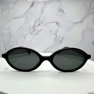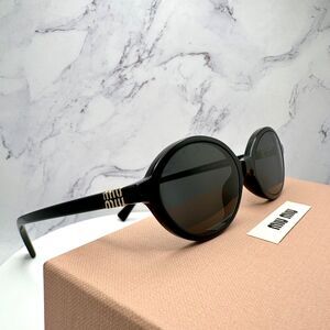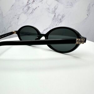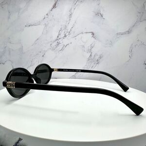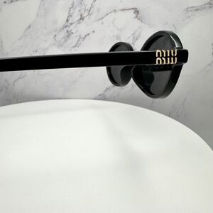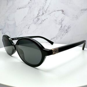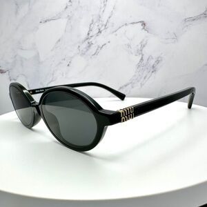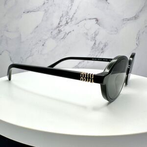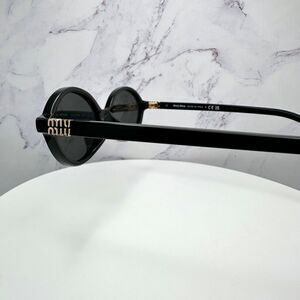 New MIU MIU Sunglasses Black Acetate Slim Round Gold Metal Logo Authentic Women
