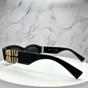 New MIU MIU Sunglasses Black Oval Acetate Gold Metal Logo Authentic Womens