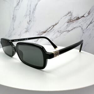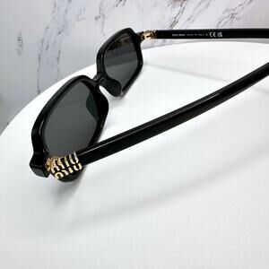 New MIU MIU Sunglasses Black Square Rectangle Acetate Gold Metal Logo Authentic