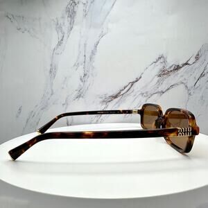 New MIU MIU Sunglasses Brown Tortoise Slim Rectangular Acetate Logo Authentic