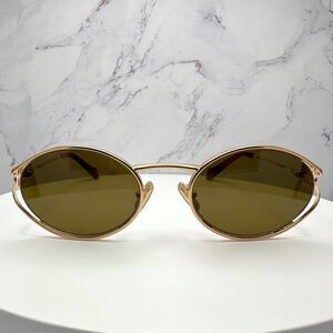 New MIU MIU Sunglasses Gold Oval Skinny Metal Frame Italy 100% Authentic
