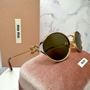 New MIU MIU Sunglasses Gold Oval Skinny Metal Frame Italy 100% Authentic