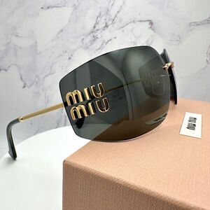 2,500 + Satisfied Customers with Positive Selling Reviews AUTHENTICITY GUARANTEED 100% ORIGINAL and BRAND NEW MIU MIU Sunglasses NEW - 100% Authentic! Sale Includes: MIU MIU Box, Case, Care Material, Polish Cloth * Brand: MIU MIU * Condition: Brand New MIU MIU Sunglasses - 100% Authentic * Gold Frame * MIU MIU Gold Metal Letter Logo * Adjustable Nose Pads * Gray Lens * Wrap Square Oversized Silhouette Shape * Unisex Eyewear * Unique Serial Number etched to confirm authenticity * Made In Italy * Measurements: Lens/Bridge/ Temple 80-14-110 mm 100% Authentic - 100% Positive Feedback - Trusted Seller! Daily Shipping - Designer Eyewear Up to 90% Off Retail - Great Gift! 737 MIU MIU Sunglasses Sale
