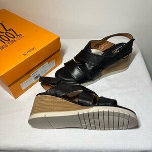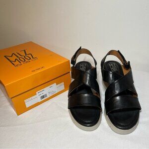 New MIZ MOOZ Black Leather Wedge Sandals Size 9 or 40