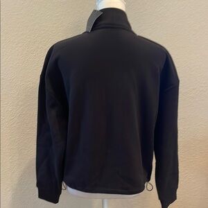 Brand new Chic black sweatshirt with a high collar. Snap button detail. Has cinch clips on both sides for a more fitted waist look. MNY logo on chest.