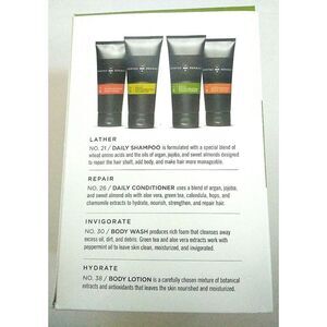 This shower kit includes four classics to keep your hair and skin clean and conditioned. The carefully formulated wash takes a hard line against dirt and oil without stripping skin, while natural plant extracts and super-charged antioxidants repair an overworked epidermis. Lightweight emollients in the body lotion keep men's skin smooth and toned. For hair care, enjoy a custom blend of botanical extracts and antioxidants with the most cutting-edge advances in science to improve texture and strength. Products are paraben-free and sulfate-free.
