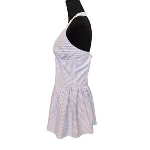 New MORE TO COME REVOLVE Women's Baby Blue Stripe Halterneck Mini Dress Size L
