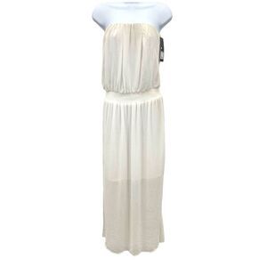 New MOSSIMO White Strapless Lined Maxi Dress Side Slits Medium Beach Cruise