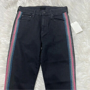 New MOTHER High Waist Looker Ankle Fray Skinny Jeans Black Guilty Glitter Racer NWT