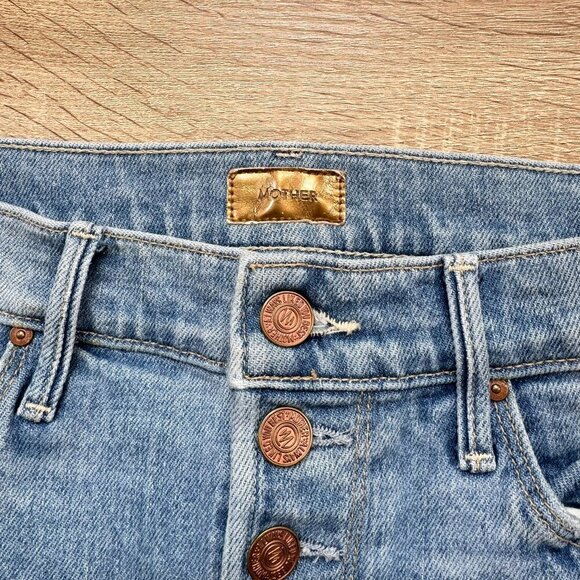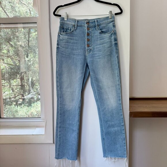 MOTHER Pixie Dazzler jeans size 29, Ivy League Cowboy wash, ankle crop straight leg denim, light blue high rise rigid jeans