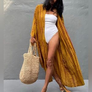 New MUSTARD & CRAN Boho Tie Dye Kimono Maxi Beach open front long COVERUP