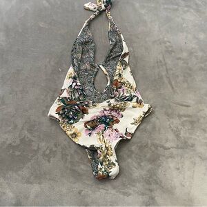 Maaji Jacobean Maia Reversible Plunge Halter One Piece Swimsuit Size Medium
