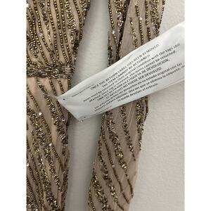 New Mac Duggal Mocha Long Sleeve Sheer Overlay Sequined 5240 Dress Size 2