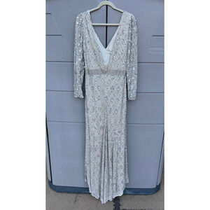 New Mac Duggal Nude Long Sleeve Sequin Embellished Trumpet Gown Size 8 $598