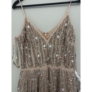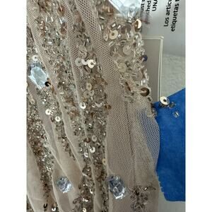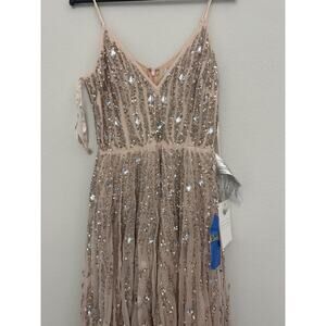 New Mac Duggal Pink Sequined Spaghetti Straps V-Neck Tulle Dress Size 8