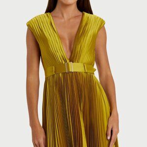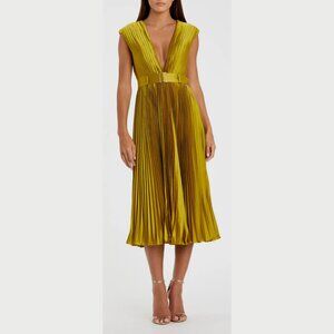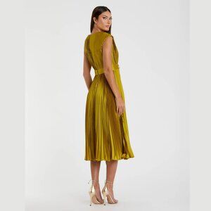 New Mac Duggal Size 12 Chartreuse Green Yellow Satin Pleated Midi Tea Gown Dress
