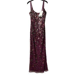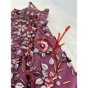 New Mac Duggal Size 12 Floral Beaded Column Gown Raspberry *Hole, Beads missing*