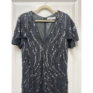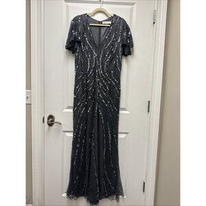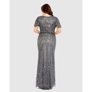 Mac Duggal Gray Flutter Sleeve Embellished Gown