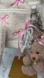 Chic cream tote bag featuring pink bow accents. Comes with a matching pouch and cute teddy bear charm.
