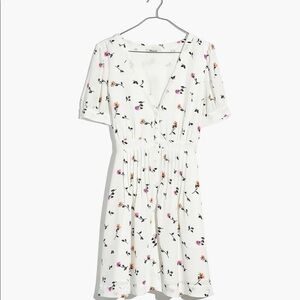 New with tags madewell Daylily Pintuck Dress in Sweet Blossoms size 10. Style #j7429. With a pintucked bodice, split sleeves and a dainty floral print, this pretty mini dress is our low-key tribute to the '40s.