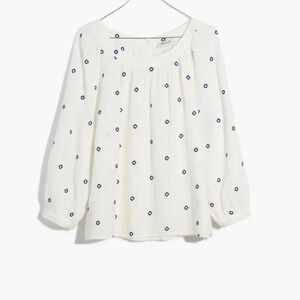 New Madewell Embroidered Lightspun Wide Neck Cuffed Sleeve Top