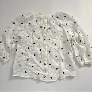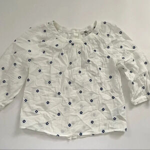 New Madewell Embroidered Lightspun Wide Neck Cuffed Sleeve Top XXS 2XS.