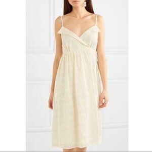 New With Tag Madewell Embroidered Pleated Voile Wrap Ivory Midi Dress