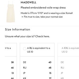 New Madewell Embroidered Pleated Voile Wrap Ivory Midi Dress NWT XL/10 US