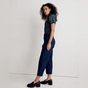 New Madewell Hopewell Puff Sleeve Green Square Neck Crop Top Shirt Size Large