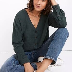 New Madewell Lightspun Evert Top Midnight Green