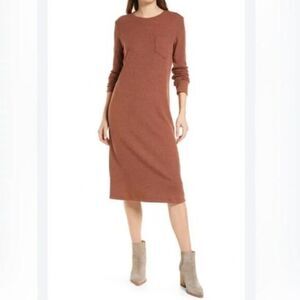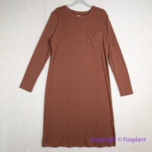 New Madewell Long-Sleeve Pocket Tee Dress in brown, size XL