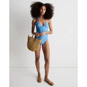 New Madewell One Piece Swimsuit Xs Blue Halter String Pull On