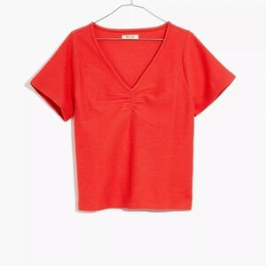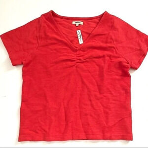New Madewell Ottoman Jacquard Ruched Front Top Blood Orange Medium M.