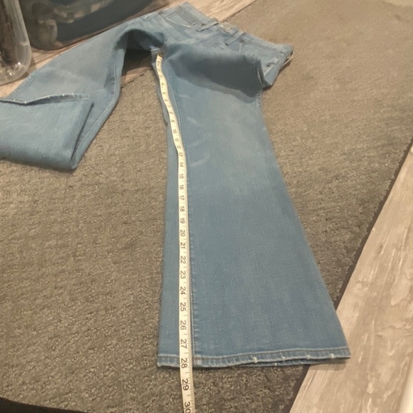 Front rise: 11"; inseam: 29"; leg opening for size 25: 19 1/2".