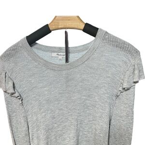 New Madewell Ruffle Shoulder Ribbed Knit Pullover Top Gray | Size L