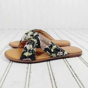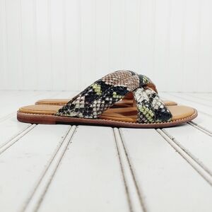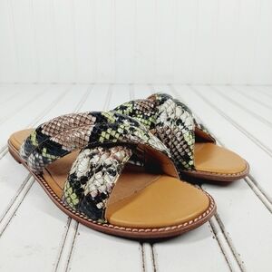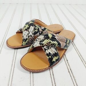 New Madewell Skyler Snake Skin Leather Green Brown Slide In Sandals K1038