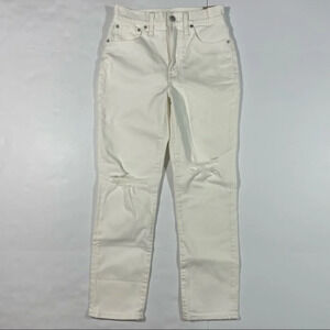 New Madewell The Perfect Vintage Crop Jean in Tile White Knee Rip Edition 25.