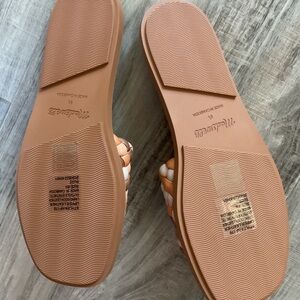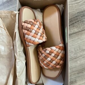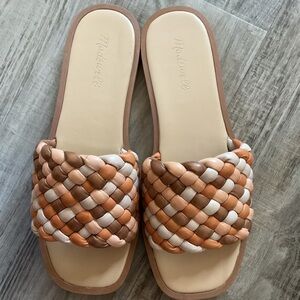 New Madewell The Suzi Slide Sandal Shoe Woven Puff Leather Square Toe Slip Flat