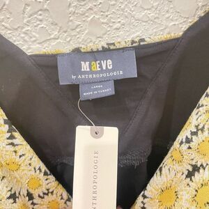 New Maeve Anthropologie Button-Side Top, Size Large, Yellow & Black Daisy Print, V-Neck Sleeveless Blouse