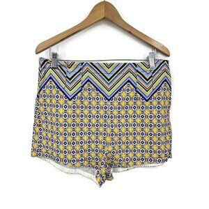 New Maeve High Rise Relaxed Shorts Womens 14 Yellow Blue Print