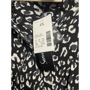 New Maggie Barnes Top Women’s 4X Plus Button Front Leopard Print Stretch Black