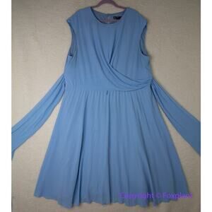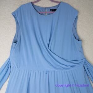 New! Maggy London blue tie waist faux wrap round neck sleeveless drses, size 24W