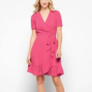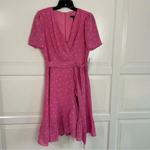 Maggy London short sleeve wrap dress in an adorable fitted rose color fabric. New with tags!