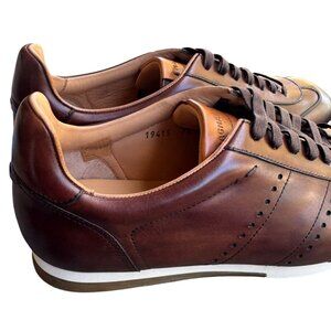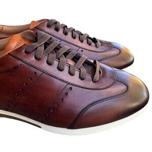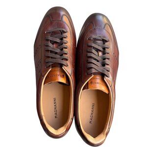 These handcrafted Magnanni sneakers offer both style and comfort. The rich brown leather upper exudes sophistication, making them a versatile choice for various occasions.