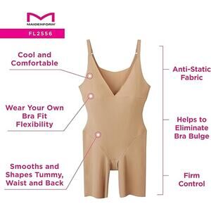 New Maidenform Womens XL Tan Shapewear Tummy Control High Waisted Bodysuit