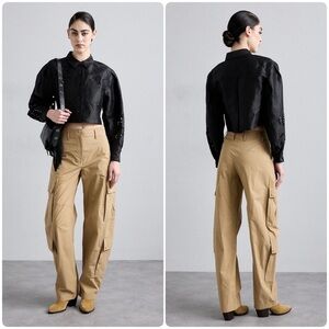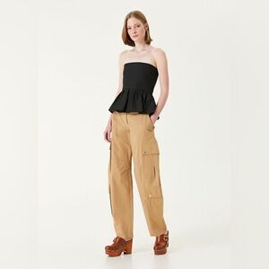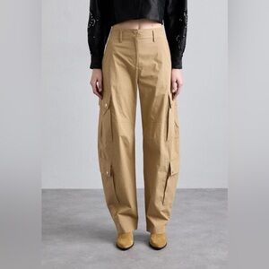 New! Maje Cargo Trousers with pockets and barrel leg pants in khaki 🤍 Large NWT!