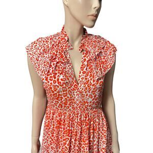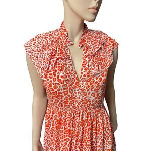 New Maje Leopard Animal Print Ruffles Orange Mini Dress Size M US 100% Viscose